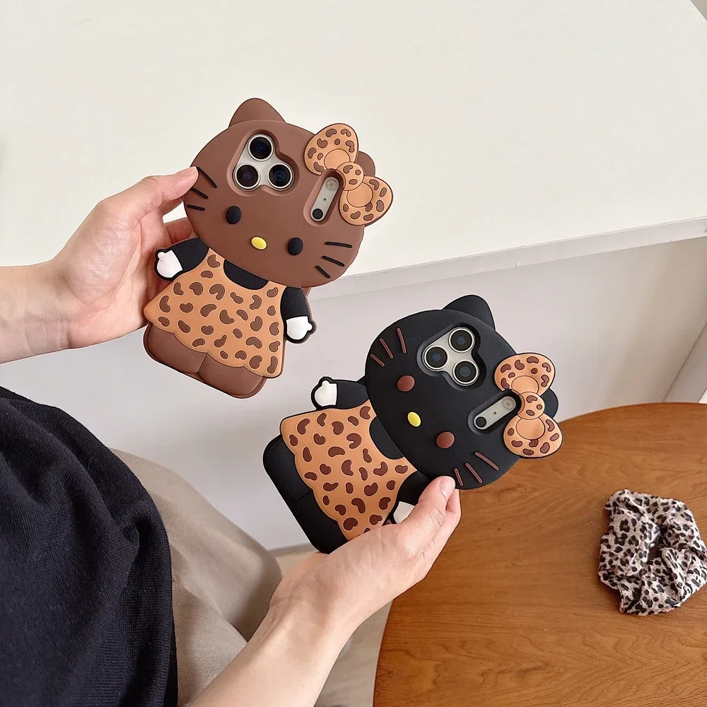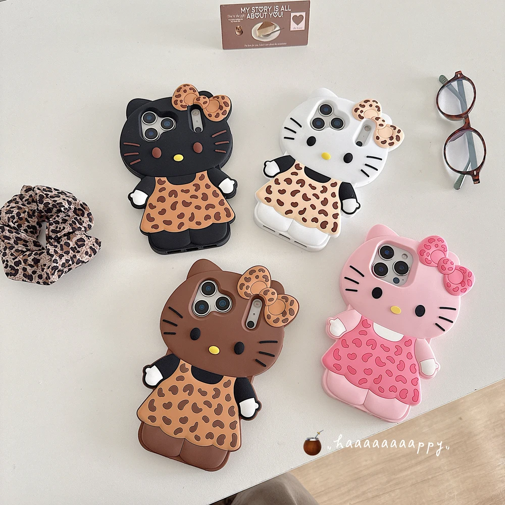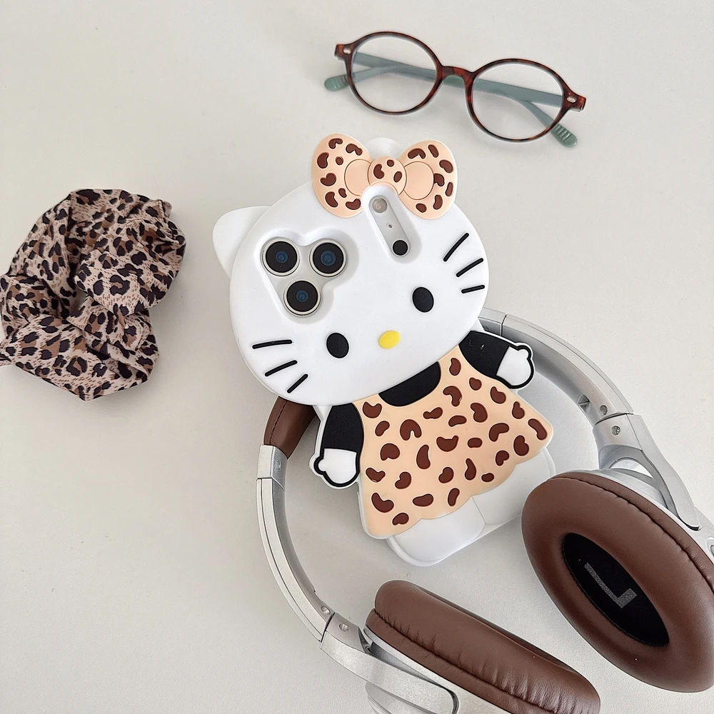 تصميم عصري: يجمع بين شخصية هالو كيتي الكلاسيكية ونقشة الفهد (Leopard Print) الجذابة على الفستان والفيونكة.