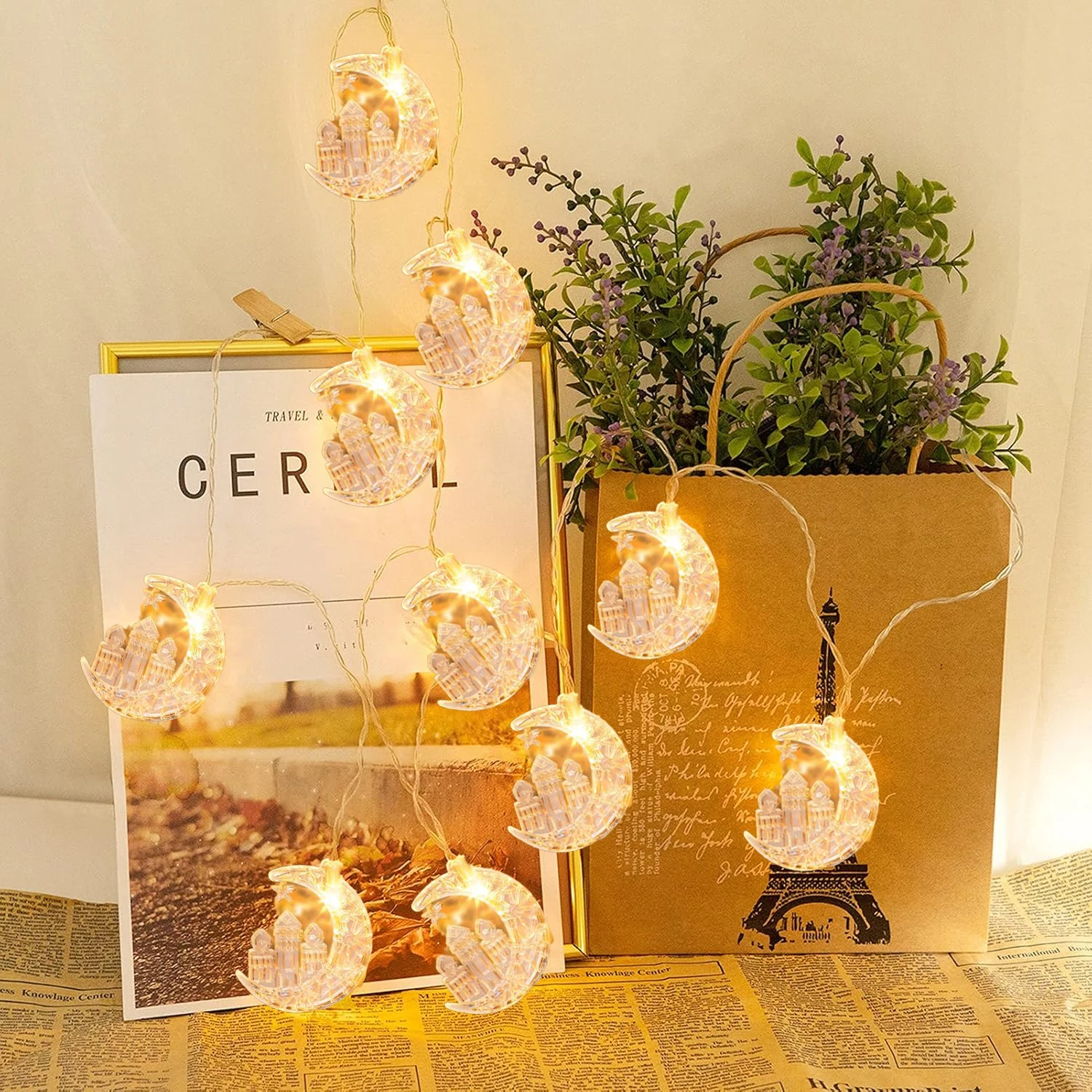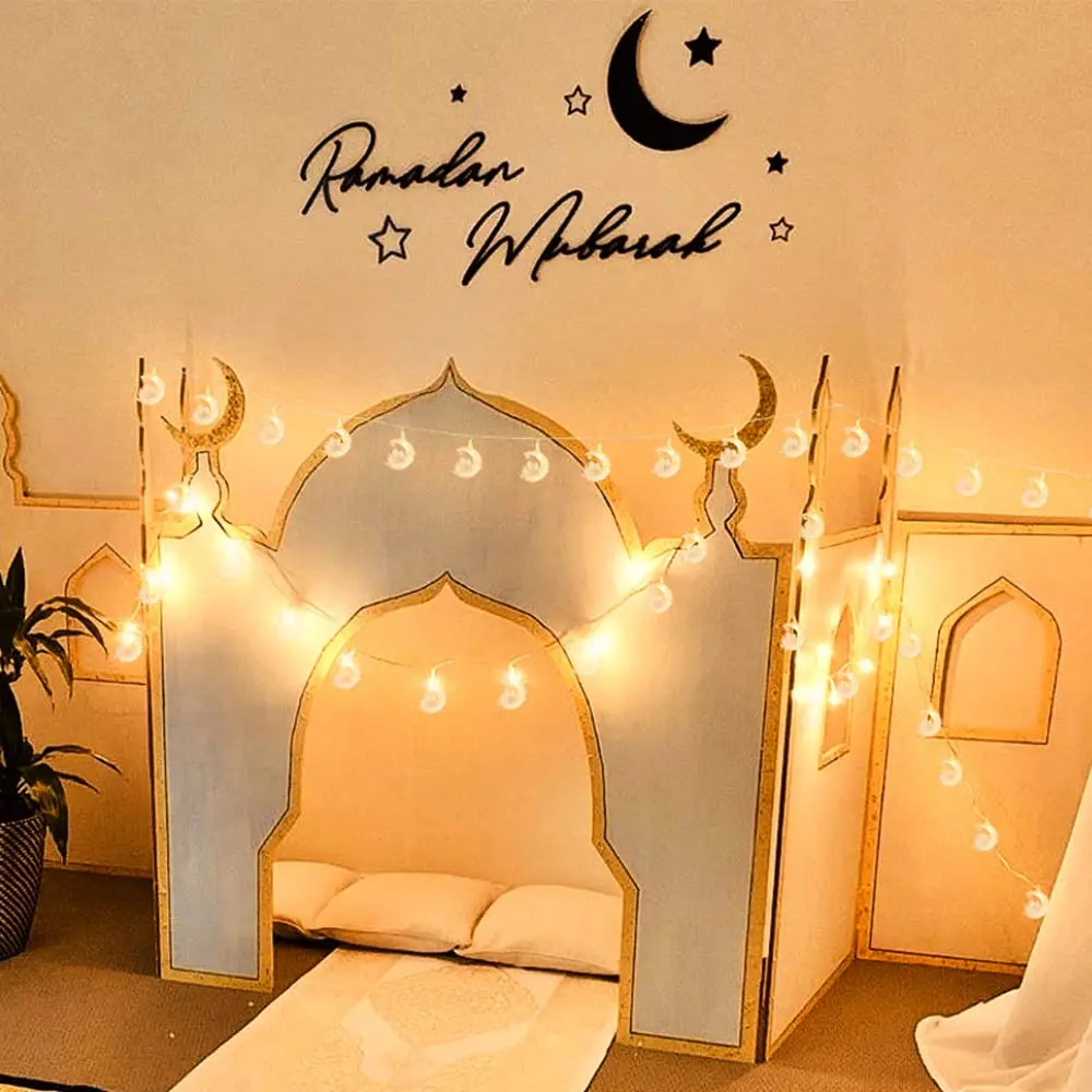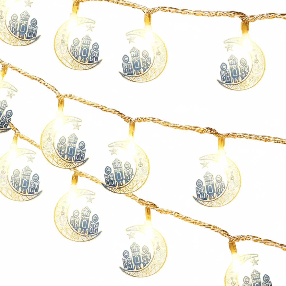 أضف لمسة من السحر والروحانية إلى منزلك مع حبال الإضاءة الرمضانية المصممة بتفاصيل دقيقة تجمع بين شكل الهلال ونقوش المسجد العريقة.