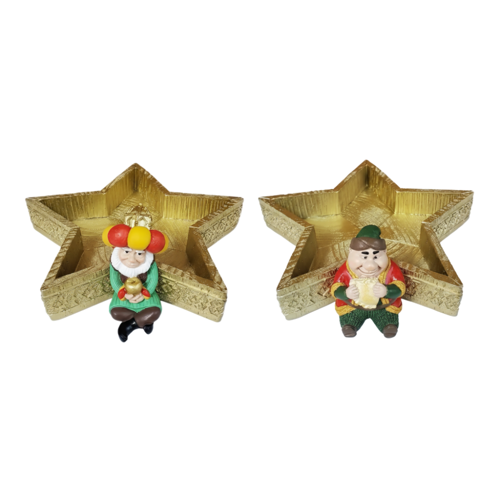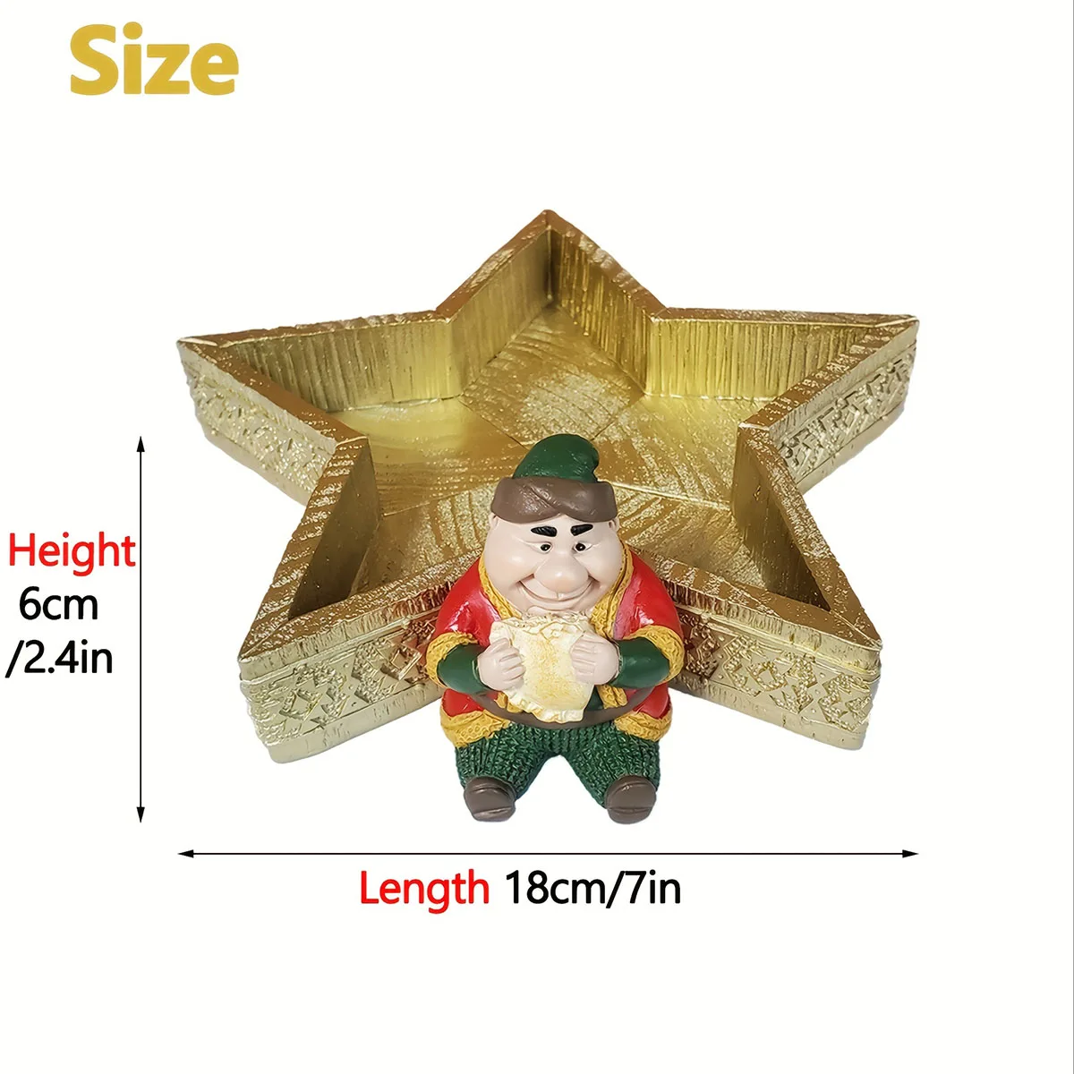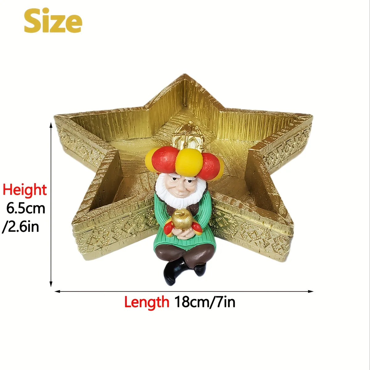 طبق تقديم أنيق يجمع بين الحداثة والذكريات الجميلة، يأتي بتصميم نجمة ذهبية مزخرفة بنقوش هندسية راقية. يتوسط الطبق مجسم لشخصية "طمطم" المحبوبة بتفاصيل ملونة ودقيقة.
